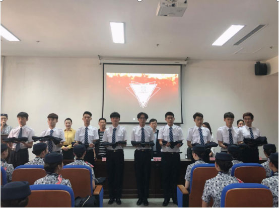 刘金松老师也在仪式上给同学们讲解了一些服饰相关的文化知识,对同学们提出了一些新的希望,穿上制服才只是民航人的起步,今后的路还很长,为了实现飞天梦想,希望身着制服的同学们在尊重制服、爱护制服的同时,要更加热爱民航事业,恪守职业道德,实现个人的蓝天梦。